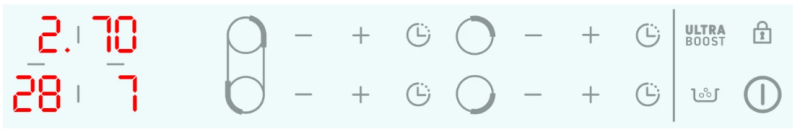 Функция Ultra Boost для немедленного доступа к максимальной производительности для всех конфорок; Независимый таймер 1-99 мин. для всех конфорок;