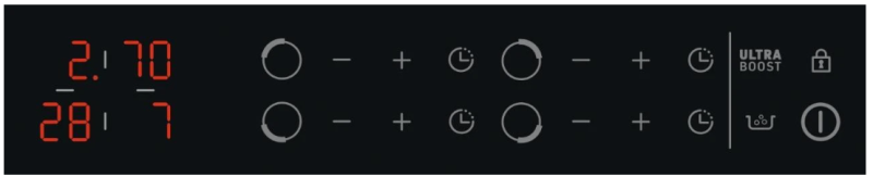 Функция Ultraboost позволяет быстро нагревать варочную панель. Процесс нагрева может быть до 20% быстрее, чем классическая функция Boost. Вызов Настройки таймера и мощности запоминаются, чтобы вы могли найти их после неожиданного отключения конфорки.