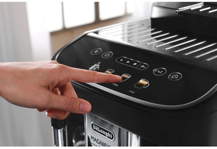 Управление простыми нажатиями Сенсорные кнопки на панели управления с удобными пиктограммами помогут быстро сделать правильный выбор. Нажав на нужную кнопку, вы уже через минуту будете наслаждаться безупречным напитком на выбор. Идеальный помол Перед каждым приготовлением бесшумная кофемолка с прочными жерновами мелет именно то количество зерен, которое нужно на порцию, не перегревая зерна в процессе помола. Благодаря этому кофе сохраняет максимум аромата и вкуса. Выбирайте один из 13 уровней помола, чтобы добиться идеальной экстракции вкуса для каждой порции кофе. Нежная молочная пена Ручной механический капучинатор приготовит изумительно нежную и воздушную молочную пену для вашего любимого кофейного напитка с молоком. Вы сможете сами регулировать количество и плотность молочной пены для каждой порции, совершенствуя свой опыт профессионального бариста. Идеальный эспрессо Каждая порция вашего эспрессо приготовлена в соответствии с традиционной итальянской рецептурой. Напиток покрыт характерной коричневой пенкой «крема» и имеет восхитительно яркий и насыщенный вкус. Персональные настройки Кофемашина Delonghi ECAM 290.21 позволит вам получить тот кофе, о котором вы мечтали. Регулируйте крепость кофе и объем порции, а также степень помола кофейных зерен и наслаждайтесь ароматным напитком с ярким насыщенным вкусом. Уход без хлопот Поддерживать машину в рабочем состоянии очень просто. Вам нужно лишь доливать воду в резервуар и удалять использованный кофе. Машина оснащена функцией автоматической декальцинации, при которой удаляется вся накипь и прочие загрязнения, которые осели на внутренних поверхностях за время работы. О необходимости проведения какой-либо обслуживающей процедуры кофемашина сообщит соответствующим индикатором. Ваш персональный бариста Delonghi Кофемашина Delonghi ECAM 290.21 готовит ароматный кофе с насыщенным вкусом всего одним нажатием на кнопку. Ручной капучинатор дает возможность легко приготовить кофейный напиток с густой воздушной молочной пеной. Выбор степени помола из 13 уровней позволяет добиться лучшей экстракции вкуса и аромата. Благодаря простоте в обслуживании и уходе вы будете наслаждаться любимым напитком без лишних хлопот.
