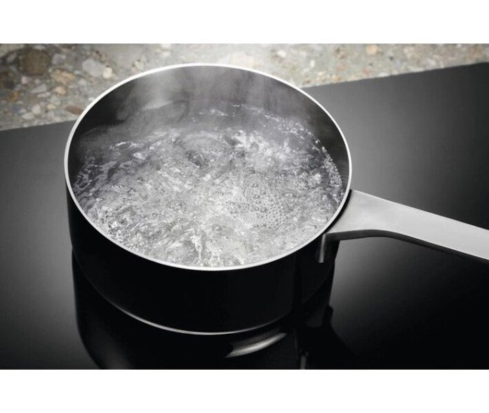 Индукция быстро и точно нагревает непосредственно нужный объект, в то время как окружающее его пространство остается холодным и безопасным. Она также обеспечивает мгновенное изменение температуры. При этом гладкая поверхность упрощает очистку. Hob2Hood — абсолютное удобство