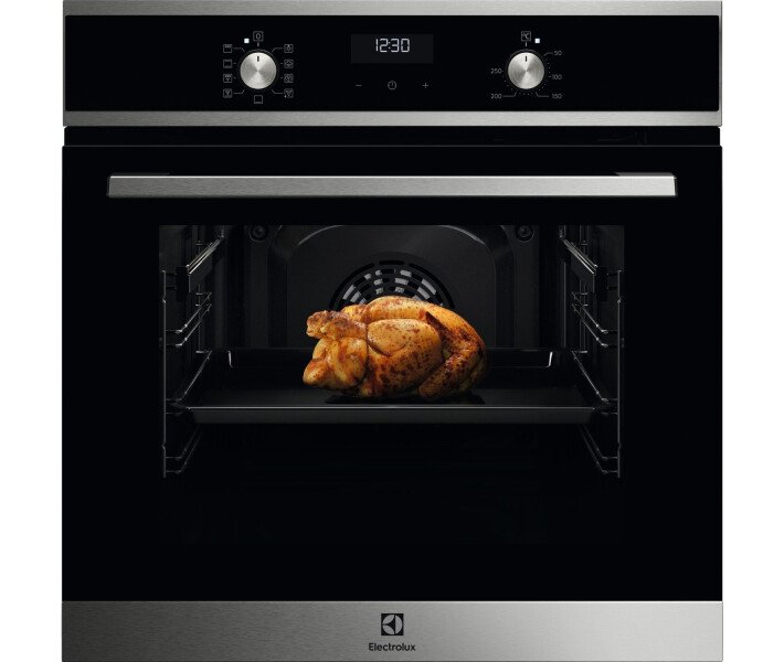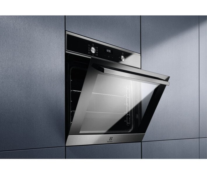 Духовой шкаф Electrolux EOD5H70BX Добавляя пару, вы можете создавать аппетитные кексы и идеальные пироги дома с духовым шкафом 600 SteamBake. Наслаждайтесь жареной курицей, лазаньей и рыбой, благодаря равномерному приготовлению. Создание хрустящей корочки и рыхлой середины одним нажатием кнопки. SteamBake для вкусной выпечки Функция SteamBake позволяет дома создавать выпечку в профессиональных пекарнях одним нажатием кнопки. Влага позволяет тесту полностью подняться, создавая великолепную мягкую серединку, в то время как сухое тепло создает яркую, хрустящую корочку. Наслаждайтесь не только вкусной выпечкой, но и жареной курицей и рыбой. Легкая очистка с AquaClean Чистка после приготовления пищи не должна быть сложным делом – наш духовой шкаф очищается с помощью дополнительной влажности. Система AquaClean улетучивает воду из дна духового шкафа, а пар ослабляет пригоревший жир и остатки пищи, оставшиеся на ее поверхностях. Благодаря этому можно с легкостью достичь естественной чистоты. Быстрое и эффективное равномерное приготовление Наша система Even Cooking обеспечивает циркуляцию тепла в духовом шкафу, гарантируя равномерное приготовление. И все это без необходимости переворачивать блюдо. Наша технология обеспечивает быстрее нагрев духового шкафа, что экономит время и энергию. Готовьте на гриле для золотистого результата Получите от своего гриля больше, чем когда-либо, — от хрустящего бекона до жареной моцареллы. Идеально подходит для хрустящих куриных крылышек и тающего во рту халуме. Точные настройки со светодиодным дисплеем с таймером Со светодиодным дисплеем таймера легко следить за процессом приготовления блюд. Можно устанавливать точное время приготовления и следить за процессом приготовления блюд. Он обеспечивает полный контроль над духовым шкафом, чтобы вы могли сосредоточиться на раскрытии своих кулинарных талантов.