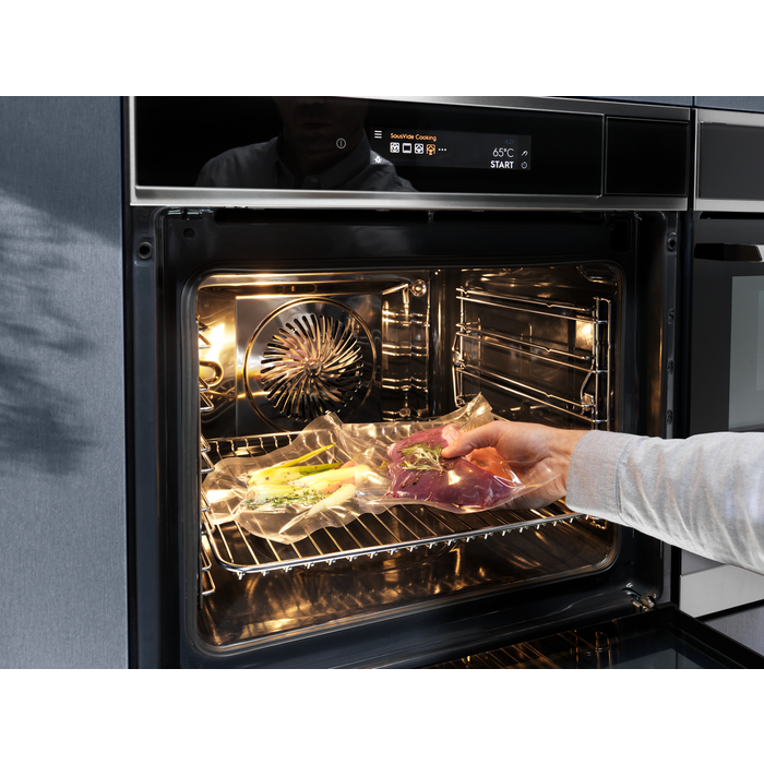 В духовом шкафу с сенсорным дисплеем TFT можно легко регулировать температуру и время приготовления любых блюд, от маффинов до лосося. Мы предоставляем вам необходимые технологии и помощь в приготовлении ваших любимых блюд. Экономия времени за счет функции быстрого разогрева
