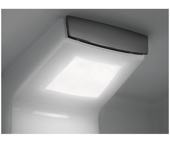 Четкий дисплей позволяет выполнять точную настройку температуры, а сенсорные электронные элементы управления на верхней панели упрощают доступ к функциям морозильной камеры холодильника.