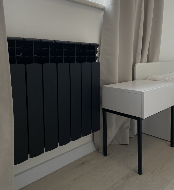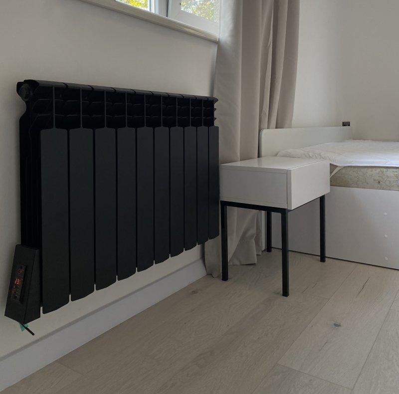 Благодаря хорошей защите от перегрева и максимальной температуре поверхности, черный радиатор отопления не сушит воздух, а также является пожаробезопасным и может совершенно спокойно устанавливаться в гаражи, деревянные дома, и детские комнаты. Максимальная температура на поверхности радиатора 60°С, дополнительно может регулироваться.