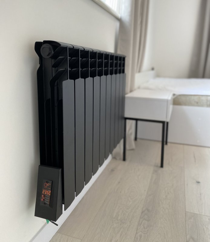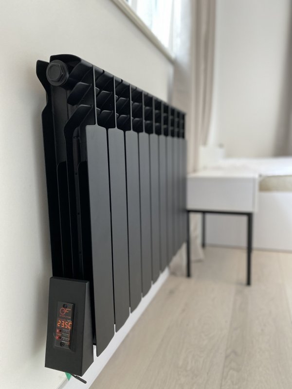 Черный радиатор отопления на 10 секций, укомплектован качественным ТЭНом и уникальным терморегулятором. Черные батареи в интерьере могут не только качественно и эффективно обогреть Ваше помещение, но и стать ярким акцентом и интересным дополнением. Идеально сочетается радиатор с современными стилями дизайна, такими как современная классика, арт-деко, хай-тек и лофт.