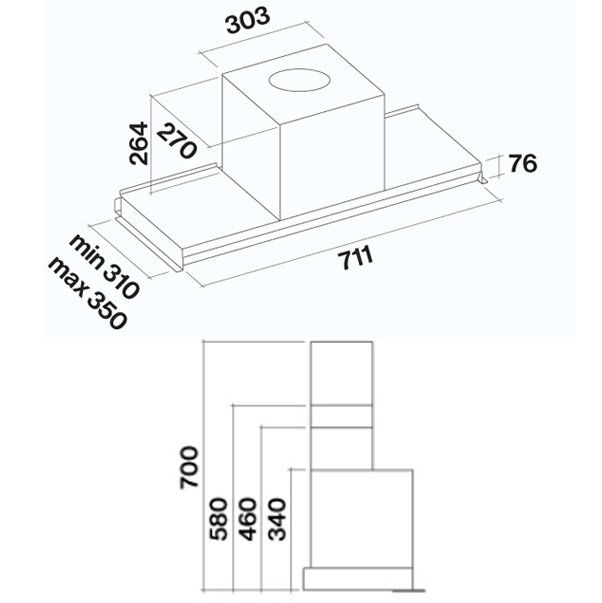 - Минимальное расстояние: электрическая плита: 52 см / газовая плита: 52 см ,