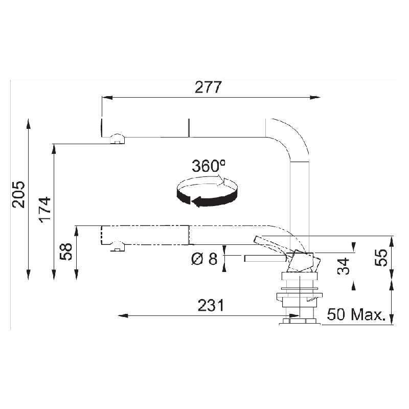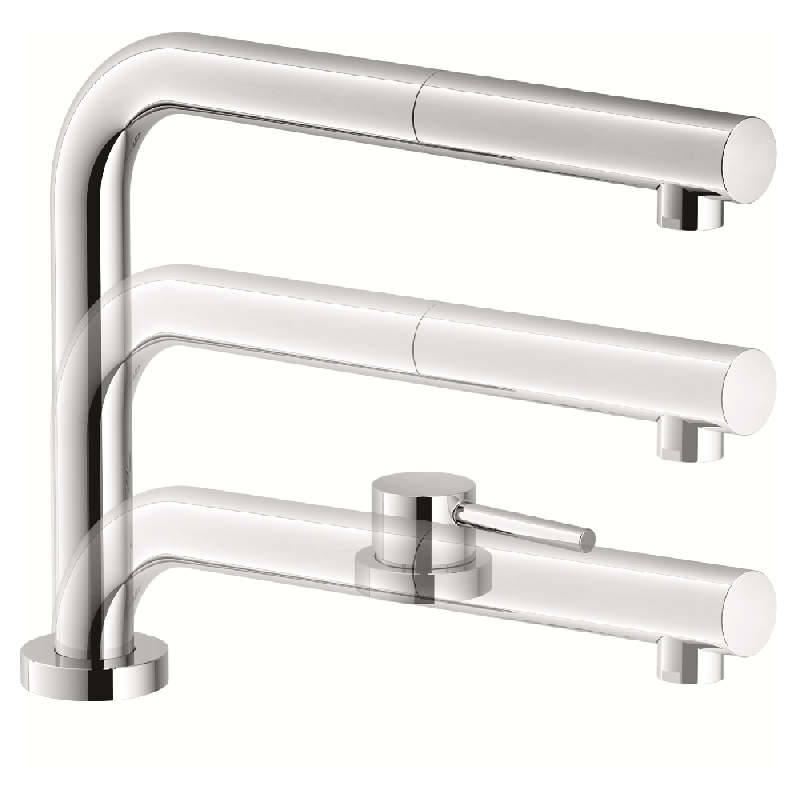Franke Active Window (115.0486.978) - выдвижной излив смесителя с выносным шлангом очень удобен для мойки большого количества посуды и заполнять разные большие емкости не занимая при этом место в мойке.