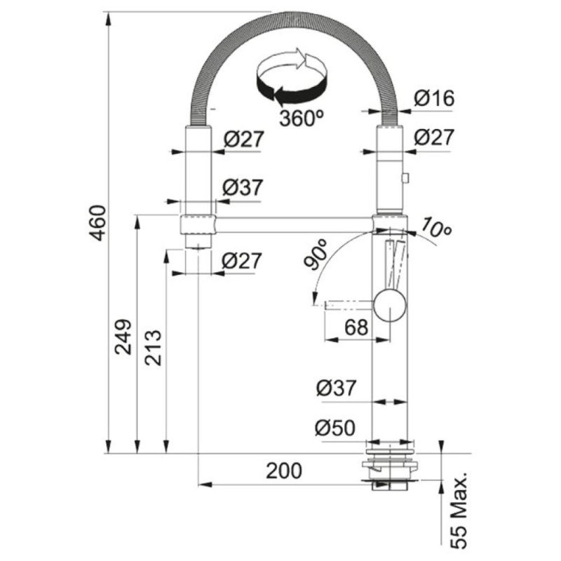 Описание Кухонный смеситель Franke FOX PRO с выносным шлангом