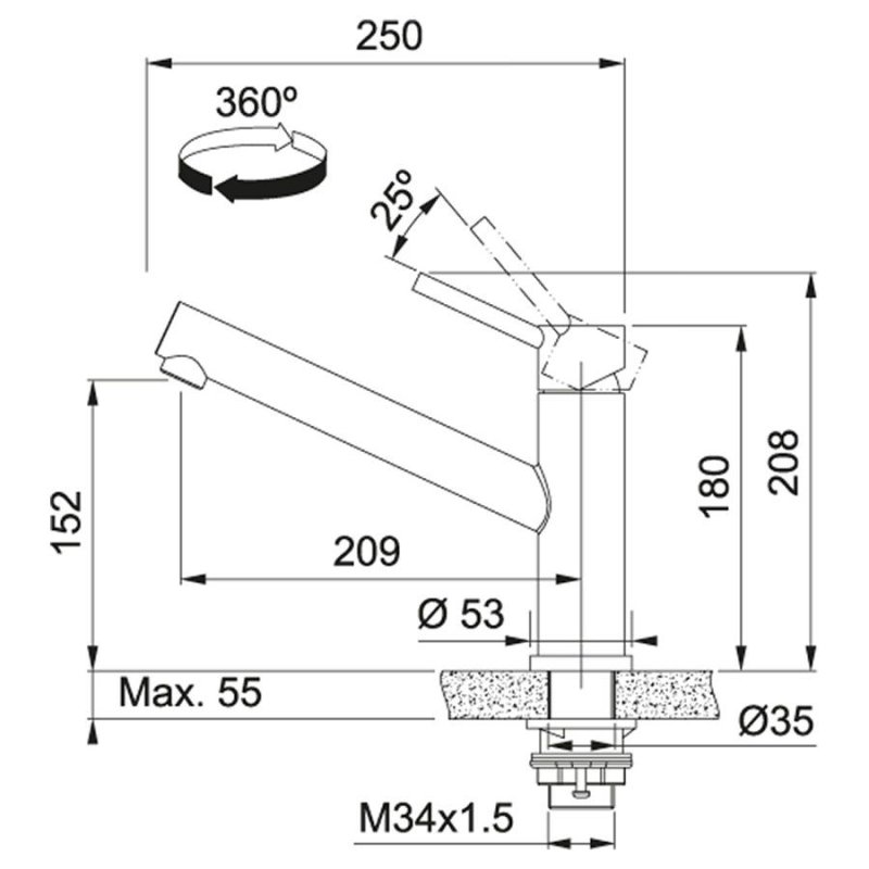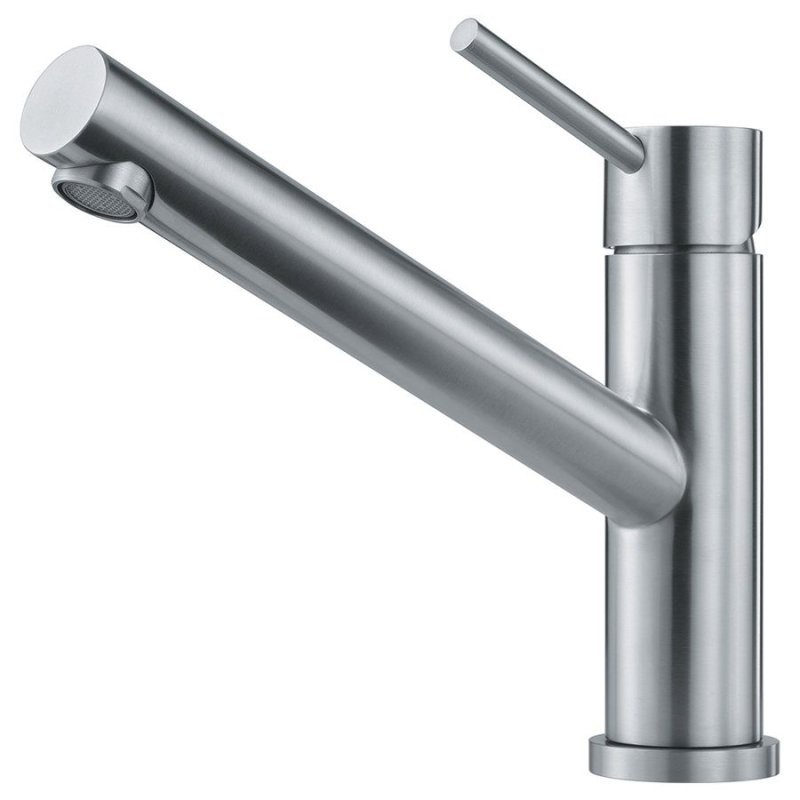 Врезной однорычажный кухонный смеситель Franke Orbit (115.0569.290) нержавеющая сталь с рычагом сверху и многоуровневым аэратором.
