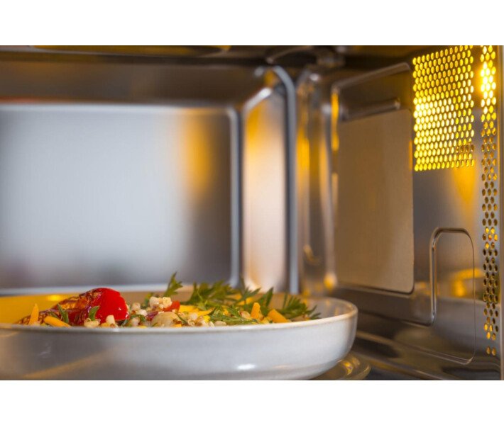 Внутренняя часть микроволновой печи изготовлена из нержавеющей стали, что способствует отличному результату приготовления. Нержавеющая сталь улучшает циркуляцию микроволн в камере духовки и значительно облегчает очистку. Микроволны объединяются с грилем