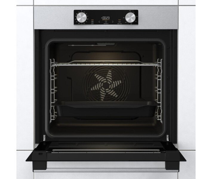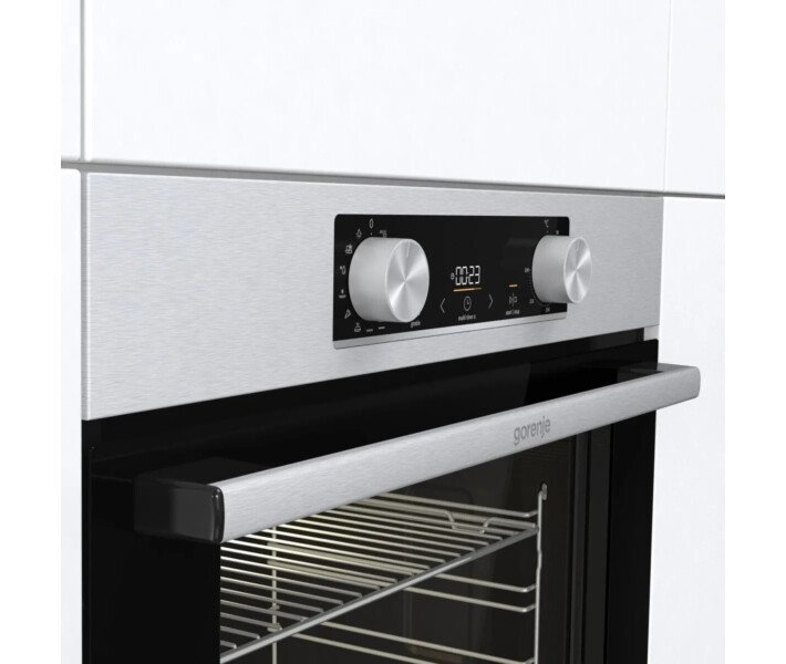 Gorenje поможет готовить с удовольствием С электрическим духовым шкафом Gorenje BO6737E02XK вы сможете легко готовить, что пожелаете: от мясных запеканок до утонченных десертов. Увеличенный объем камеры 77 лиров дает возможность запечь гуся или индейку. Уникальная форма духовки HomeMade позволяет готовить сразу на нескольких уровнях. Функция PerfectGrill создает хрустящую корочку на мясных блюдах, а инновационный метод выпекания AirFry использует для жарки горячий воздух и не требует добавления жира. С системой DynamiCooling+ внешние поверхности духовки всегда остаются безопасной температуры. Жареные блюда без жира Да, это вполне реально с духовым шкафом Gorenje BO6737E02XK. Интенсивное выпекание AirFry использует горячий воздух и не требует добавления жира для образования хрустящей корочки. Готовьте мясо и рыбу, овощи и куриные наггетсы и получайте вкусные блюда без лишнего жира. Всего 5 минут на разогрев Чтобы разогреть камеру духовки до 200 градусов, понадобится всего 5 минут – это на 30% быстрее, чем в обычной духовке. Когда камера разогреется, вы получите звуковой сигнал и визуальное подтверждение при помощи светового индикатора. Больше не нужно ждать, приступайте сразу к готовке. Много полезных функций Функция «Пицца» с поддержкой температуры до 300 градусов создана специально для приготовления превосходной пиццы, фокаччо или коржей. Готовьте замороженные продукты и полуфабрикаты, используя специальную функцию FrozenBake. Функция «Гратен» покроет вашу запеканку или лазанью аппетитной корочкой. Выпекание на разных уровнях В духовом шкафу Gorenje BO6737E02XK блюда идеально пропекаются изнутри, покрываясь сверху аппетитной корочкой. Благодаря уникальной округлой форме духовки HomeMade и усовершенствованному нагревателю создается эффект традиционной дровяной печи и происходит равномерное распределение температуры внутри камеры. Блюдо, на каком бы уровне оно ни находилось, превосходно прогревается и готовится быстрее. Вы сможете готовить несколько блюд одновременно, располагая их на разных уровнях. Каждое блюдо будет приготовлено именно так, как вы задумали. Функция PerfectGrill для хрусятщей корочки Для получения лучших результатов выпекания в духовке Gorenje BO6737E02XK используются большой и малый нагреватели, причем малый расположен внутри большого. Такое размещение обеспечивает оптимальное распределение тепла: блюдо покрывается аппетитной хрустящей корочкой снаружи, оставаясь нежным и сочным внутри. GentleBake для медленного томления Если нужно приготовить нежное и сочное блюдо, то специально для этого предусмотрен режим GentleBake, который обеспечивает медленное и равномерное выпекание. Такой метод приготовления сохраняет влагу внутри, и блюдо выходит изумительно вкусным. Система охлаждения DC+ Динамичная система охлаждения DC+ и двойное остекление дверцы обеспечивают улучшенную изоляцию духового шкафа, предотвращают потери тепла и оптимизируют энергопотребление. Внешние поверхности духовки не нагреваются, кухонной мебели ничего не угрожает, а приготовление становится абсолютно безопасным. Стекло в дверце легко вынимается для очистки.