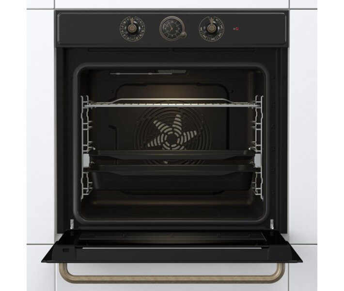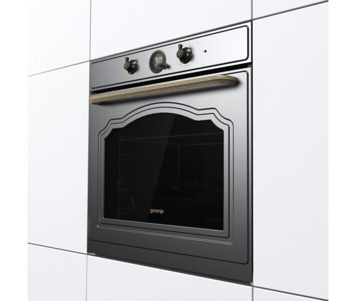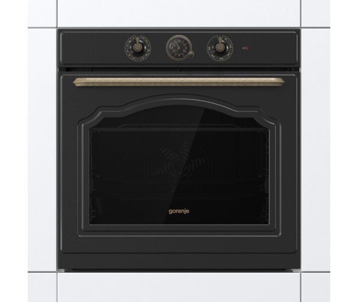 Готовка высокого уровня В духовке Gorenje BOS67372CL вы найдете вдохновение во всем – от ее классического дизайна с аналоговым таймером до функционала выпечки, очищения и гриля. Эта практичная и стильная модель приносит в вашу кухню нотки ретро, сохраняя современную функциональность. Камера BigSpace обладает внушительным объемом 77 литров, так что вы сможете создать шедевральные блюда без ограничений. Форма HomeMade Plus а-ля доменная печь в полной мере способствует этому. Сияющая чистота Система AquaClean обеспечивает превосходное удобство при очистке. Она упрощает задачу поддержания духового шкафа Gorenje BOS67372CL в чистоте и готовности к следующей рабочей сессии. После готовки достаточно налить немного воды в противень, включить программу очищения и дождаться, пока влага не осядет на стенках. После этого будет предельно легко снять грязь мягкой губкой. Искусство итальянской кухни Дайте свободу внутреннему гурману с функцией Pizza. Эта программа специально разработана для приготовления пицц, фокачча и других угощений, в основе которых тесто. Просто выберите этот режим, и ваше блюдо будет великолепным: достаточно пропеченным, местами хрустящим и в меру сочным. Ваше время – ваш контроль Уникальная черта линейки Classic – аналоговый таймер со стильным золотистым обрамлением. Пользователь может запрограммировать инструмент на обратный отсчет, тем самым, обеспечив точный контроль готовки. Останется лишь изъять готовое блюдо после того, как услышите звуковой сигнал.