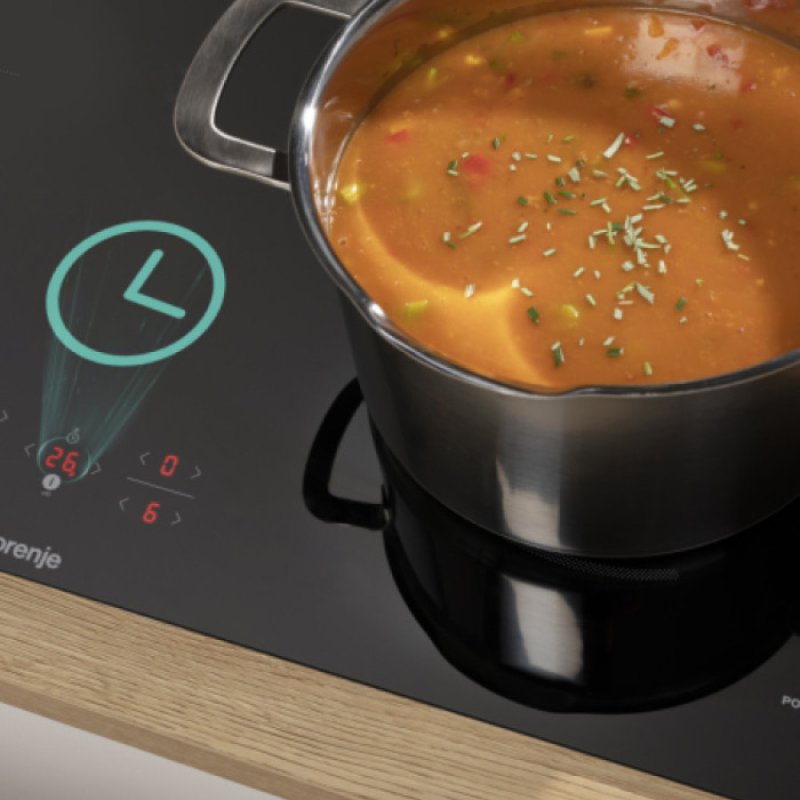 Gorenje GI8421BSC – это индукционная варочная поверхность, сочетающая в себе элегантный дизайн и инновационные технологии для удобного и эффективного приготовления пищи. Она оборудована четырьмя индукционными конфорками, позволяющими быстро и равномерно нагревать посуду. Зона диаметром 23 см обеспечивает максимальную площадь для приготовления больших блюд, а также функцией BridgeZone для сочетания конфорок, что позволяет использовать их как одну большую зону. Благодаря функции AllBoost можно одновременно использовать функцию PowerBoost на всех конфорках, что значительно увеличивает скорость нагрева.