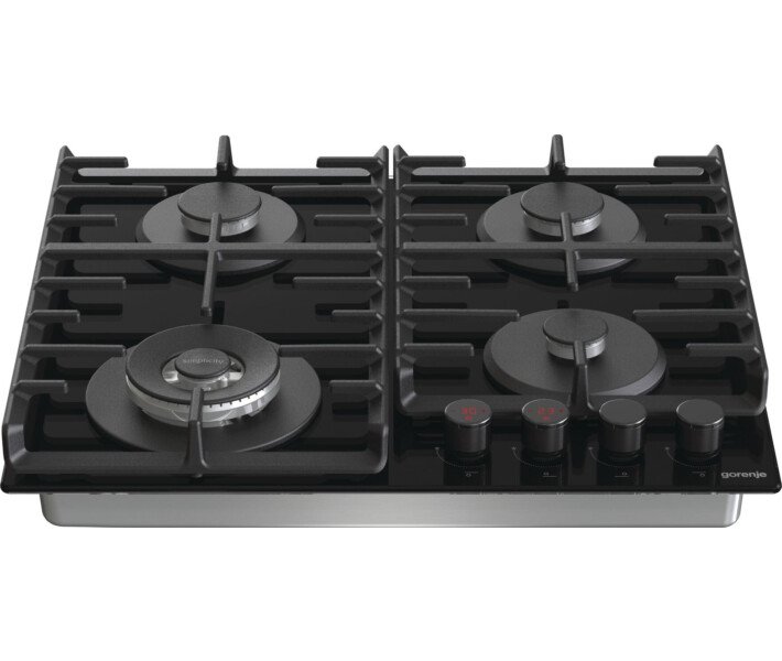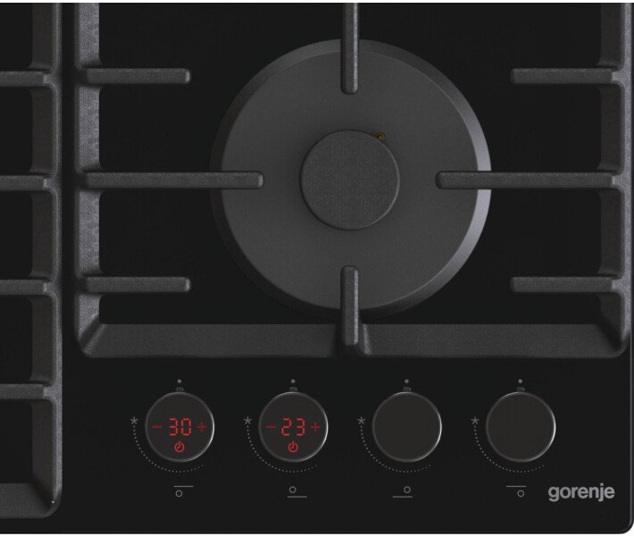 Gorenje GKTW642SYB – газовая варочная поверхность от компании Gorenje. Данная модель варочной поверхности имеет на 20% увеличенную площадь поверхности, а также увеличенное расстояние между горелками. Это способствует тому, что на поверхности выгодно помещаются даже самые большие по объему и диаметру дна кастрюли и сковородки. Благодаря эргономичному дизайну, можно легко перемещать посуду от одной конфорки к другой. Полный контроль
