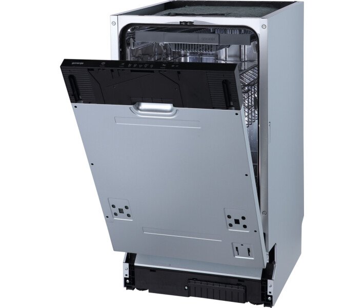 Машинка Gorenje GV520E10 предназначена для установки в мебель. Она полностью встраивается в кухонный шкаф стандартной ширины 45 сантиметров. А снаружи закрывается фасадом под цвет остальной мебели. В выключенном состоянии устройство даже не заметно. И это прекрасно. Ведь большое количество техники в маленькой кухне немного портит общую картину дизайна. Система защиты