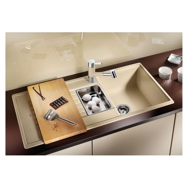 Blanco ZIA 6 S белый 514742 кухонная мойка выполнена из искусственного камня Silgranit PuraDur высокого качества и подходит для установки в кухонный шкаф шириной 50 см. Модель мойка оснащена большой прямоугольной чашей и просторным крылом с рельефной поверхностью для сушки посуды. Blanco ZIA 6 S белый, также оснащена малой чашей, которая может служить для удобной разморозки продуктов. А также в неё можно установить легко съёмный коландер из нержавеющей стали для промывки продуктов. Мойка для врезного монтажа является оборачиваемой, что позволяет расположить основную чашу согласно вашим предпочтениям. Глубина основной чаши данной модели мойки составляет 19 см, а дополнительной чаши 14 см. Модель ZIA 6 S 514742 производится на заводе Blanco в Германии и на нее распространяется официальная гарантия производителя в течение 5 лет.