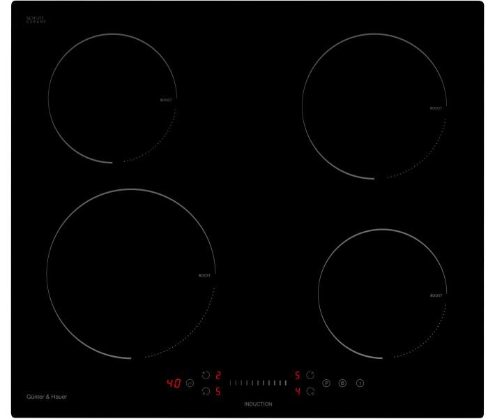 Gunter & Hauer I 6 M – это стильная и современная индукционная варочная панель, оснащенная удобным сенсорным управлением «Slide Touch-Control» и режимом повышенной мощности «POWERBOOST», которая готова взять на себя задачи по приготовлению пищи в вашем доме. Поверхность панели выполнена из жаростойкой и прочной стеклокерамики. При готовке на такой панели будет нагреваться не вся поверхность, а только дно кастрюли или сковородки, поэтому на одной и той же конфорке можно использовать посуду разного размера, а сенсор наличия посуды «Pan Sensor» автоматически распознает ее диаметр и будет нагревать только его. При снятии посуды с конфорки она отключится самостоятельно. Если вам необходимо быстро нагреть большое количество воды, например основу для супа, то вы можете воспользоваться технологией «Booster», которая увеличивает мощность конфорки на 50% до 10 минут. Индикаторы остаточного тепла помогут вам не обжечься при уборке варочной панели, они подадут сигнал о том, что конфорки еще не остыли после работы. Сенсорное управление максимально упрощает работу с Gunter & Hauer I 6 M, с его помощью можно включать и выключать конфорки одним нажатием, устанавливать таймер или ставить на варочной панели защитную блокировку от детей.