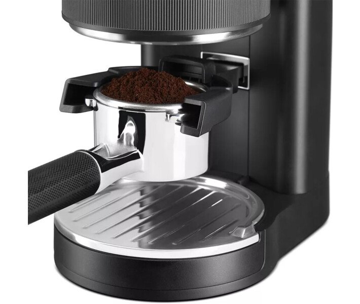 Кофемолка 5KCG8433EAC оснащена нижним жерновом и регулируемым верхним жерновом. Выполнение регулировки верхнего жернова позволяет увеличить размер частиц по всему диапазону степеней помола, тем самым расширяя возможности регулировки помола.