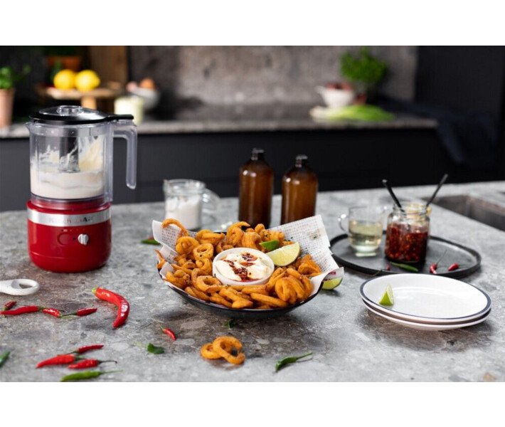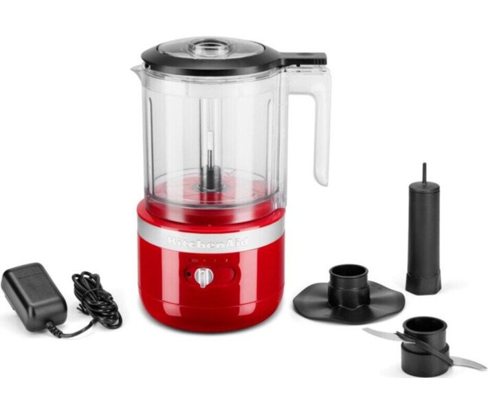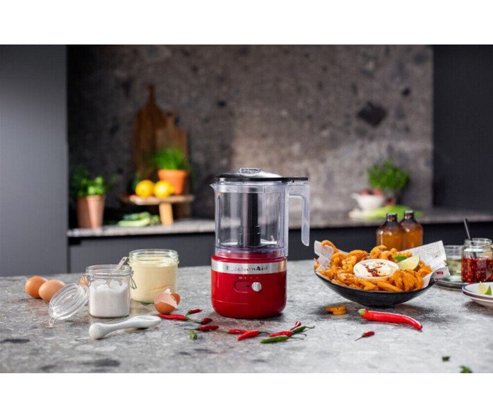Отправляйтесь туда, куда вас заведут амбиции, с беспроводным измельчителем KitchenAid 5KFCB519EER. Он обеспечивает достаточную мощность даже без кабеля. Новый беспроводной измельчитель продуктов с мощным перезаряжаемым литий-ионным аккумулятором обеспечивает оптимальное время работы и производительность. Вы можете нарезать до 40 луковиц при полной зарядке, а индикатор заряда батареи подскажет, когда нужно перезарядиться. Измельчайте, перемешивайте, превращайте в пюре и взбивайте с помощью входящего в комплект лезвия из нержавеющей стали или насадки для взбивания. Перерабатывайте фрукты, овощи и травы, сырое мясо, панировочные сухари, яйца, сливки, орехи и многое другое. 2 скорости на выбор. Вы можете контролировать текстуру и добавлять любые жидкие ингредиенты через отверстие для жидкости в крышке. Коллекция Cordless включает измельчитель, ручной блендер и ручной миксер, каждый из которых продается отдельно. Удобное зарядное устройство входит в комплект и работает со всеми продуктами в коллекции.
