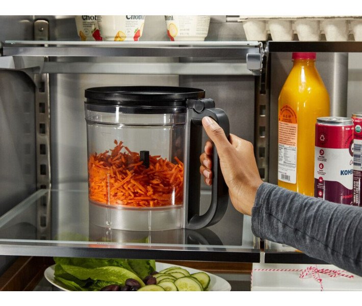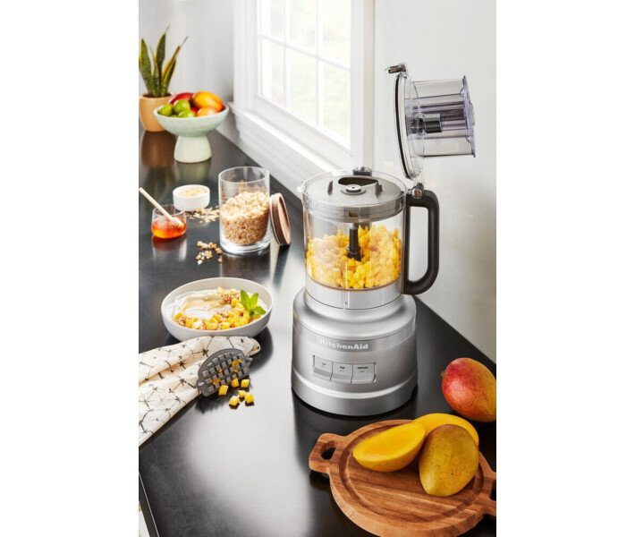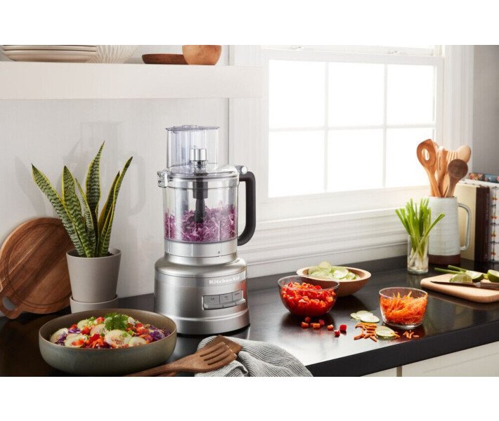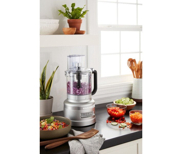 Со всеми функциями, которые KitchenAid 3,1 л 5KFP1319ECU может предложить, вы можете быстро разобраться со свежими овощами, орехами, сырами, тестом, соусами, сальсой и многим другим. Вы готовы приготовить любое блюдо — будь то свежий салат, нарезанный кубиками картофель для жаркого или нарезанный баклажан для запекания. Получите практически любую структуру для своих творений. Измельчайте, шинкуйте, нарезайте кубиками, месите, смешивайте, делайте пюре и нарезайте на ломтики. Экономьте место с помощью удобной подставки для хранения насадок. Все лезвия и диски помещаются прямо в рабочую чашу, готовую к следующему разу.