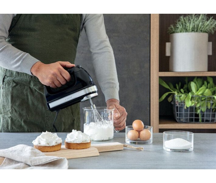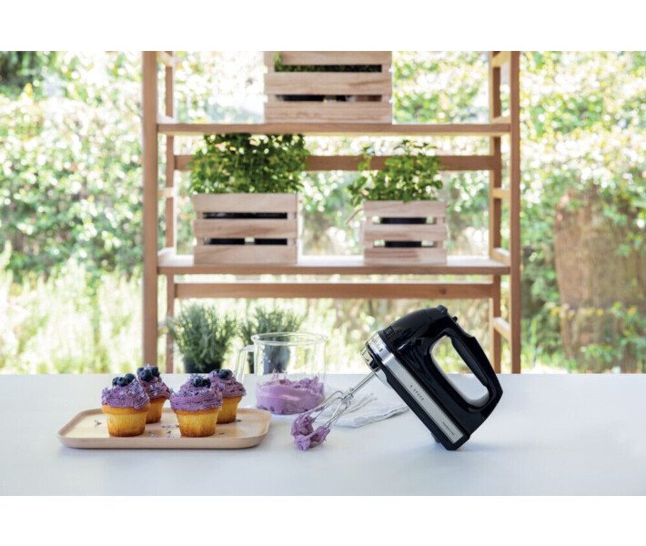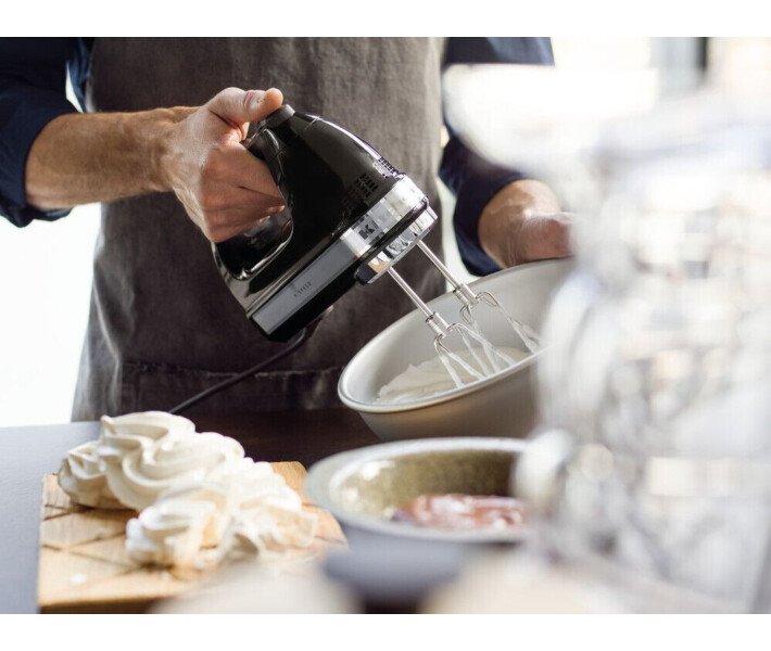 Положитесь на компактные размеры и получите превосходные результаты. Делайте любую еду кулинарным шедевром с помощью 9-скоростного цифрового ручного миксера KitchenAid. Диапазон из девяти скоростей расширяет ваши творческие возможности: низкие скорости идеальны для помешивания деликатных соусов или молочных коктейлей безо всякого разбрызгивания. На более высоких скоростях можно замешивать густое тесто. А самые большие скорости подходят для идеального взбивания яичных белков. Цифровой ручной миксер – младший брат классического настольного миксера KitchenAid, особенно подходящий для деятельных поваров или тех кулинаров, у кого весьма ограничено пространство столешницы. Положитесь на компактные размеры и получите превосходные результаты: от восхитительных дежурных блюд до утонченных яств на выходные. Вы также можете положиться на неизменное высокое качество техники KitchenAid. Сделанный в США, надежный электродвигатель постоянного тока (85 Вт) сочетается с цифровым светодиодным дисплеем, обеспечивая точность и мощность. Поддержка всего диапазона аксессуаров означает, что вам по плечу любые рецепты для выпечки и кондитерских изделий. Две турбовзбивалки из нержавеющей стали, входящие в стандартный комплект поставки, великолепно справляются с густыми смесями и большими объемами. Четыре следующих аксессуара включают в себя два крюка для замешивания теста, 16-проволочный венчик, стержневой смеситель и чехол из хлопка для хранения.