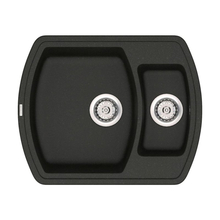 накладная мойка с дополнительной чашей, материал: кварц, прямоугольная форма с скругленными сторонами, размеры мойки (ШхГ): 63х51 см, цвет: черный