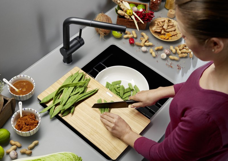 - При монтаже под столешницу идеально сочетается с высококачественными столешницами