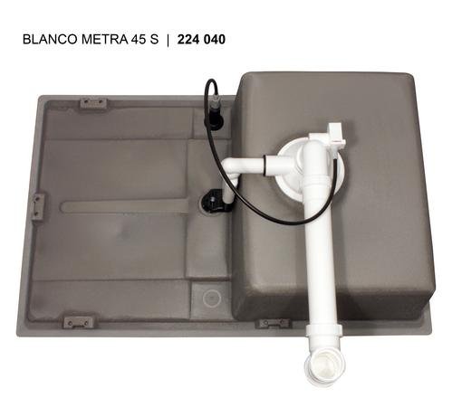 Кухонная мойка Blanco METRA 45 S Compact нежно белый, выполнена из искусственного камня SILGRANIT® высокого качества и подходит для установки в кухонный шкаф шириной 45 см. с монтажом под столешницу. Глубина чаши мойки составляет 19 см. Модель METRA 45 S Compact нежно белый, 527102 производится на заводе Blanco в Германии и на нее распространяется официальная гарантия производителя в течение 5 лет. На нашем сайте вы можете купить мойку Blanco Metra 45 S Compact 525913 онлайн с доставкой по любому адресу в Украине Гранитные мойки производятся из материала Silgranit. Этот композитный материал имеет долю натурального гранита около 80%. Это видимо не только при взгляде, но и на ощупь. Мойки из материала Silgranit имеют приятную на ощупь структуру натурального камня и очень легки в уходе. Silgranit действует как защитная гигеническая формула, обеспечивающая очень легкий уход. Более того, материал отличается высокой стойкостью. На кухне вы хотите готовить из чего угодно, например томатов, клубники, лимонного сока или моркови. Ваша мойка останется невосприимчивой к тому, что вы готовите за ней и не допустит никаких отложений или обесцвечивания. Такое сочетание делает вашу мойку из материала Silgranit оптимальной с точки зрения функциональности и хорошего вида. Актуальный дизайн для современной кухни