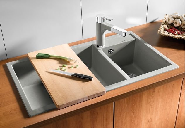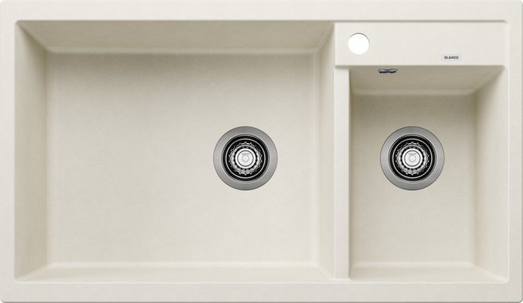 Кухонная мойка Blanco METRA 9 (основная чаша слева) нежно белый выполнена из искусственного камня SILGRANIT® высокого качества и подходит для установки в кухонный шкаф шириной 80 см. с монтажом под столешницу. Глубина чаши мойки составляет 19 см и 13 см глубина дополнительной чаши. Модель METRA 9 (основная чаша слева) нежно белый 527121 производится на заводе Blanco в Германии и на нее распространяется официальная гарантия производителя в течение 5 лет. На нашем сайте вы можете купить мойку Blanco METRA 9 (основная чаша слева) нежно белый 527121 онлайн с доставкой по любому адресу в Украине Гранитные мойки производятся из материала Silgranit. Этот композитный материал имеет долю натурального гранита около 80%. Это видимо не только при взгляде, но и на ощупь. Мойки из материала Silgranit имеют приятную на ощупь структуру натурального камня и очень легки в уходе. Silgranit действует как защитная гигеническая формула, обеспечивающая очень легкий уход. Более того, материал отличается высокой стойкостью. На кухне вы хотите готовить из чего угодно, например томатов, клубники, лимонного сока или моркови. Ваша мойка останется невосприимчивой к тому, что вы готовите за ней и не допустит никаких отложений или обесцвечивания. Такое сочетание делает вашу мойку из материала Silgranit оптимальной с точки зрения функциональности и хорошего вида. Чистота линий – максимальный комфорт