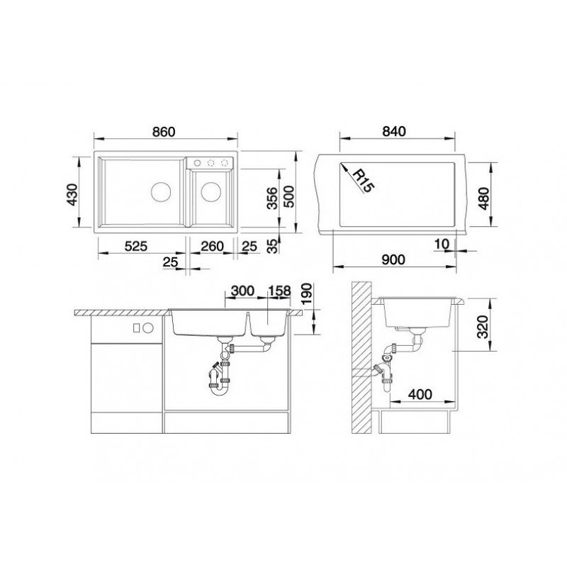 Характеристики Кухонная мойка Blanco METRA 9 чаша слева тёмная скала 518886