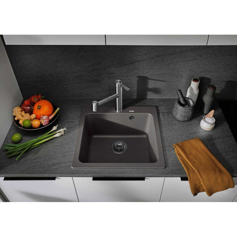 Кухонная мойка Blanco NAYA 5 тёмная скала выполнена из искусственного камня SILGRANIT® высокого качества и подходит для установки в кухонный шкаф шириной 50 см. Накладная мойка с одной основной чашей, без сушки (крыла). Глубина чаши мойки составляет 20 см. Модель NAYA 5 тёмная скала 526580 производится на заводе Blanco в Германии и на нее распространяется официальная гарантия производителя в течение 5 лет. На нашем сайте вы можете купить мойку Blanco NAYA 5 тёмная скала 526580 онлайн с доставкой по любому адресу в Украине Гранитные мойки производятся из материала Silgranit. Этот композитный материал имеет долю натурального гранита около 80%. Это видимо не только при взгляде, но и на ощупь. Мойки из материала Silgranit имеют приятную на ощупь структуру натурального камня и очень легки в уходе. Silgranit действует как защитная гигеническая формула, обеспечивающая очень легкий уход. Более того, материал отличается высокой стойкостью. На кухне вы хотите готовить из чего угодно, например томатов, клубники, лимонного сока или моркови. Ваша мойка останется невосприимчивой к тому, что вы готовите за ней и не допустит никаких отложений или обесцвечивания. Такое сочетание делает вашу мойку из материала Silgranit оптимальной с точки зрения функциональности и хорошего вида. Новинка 2022 года