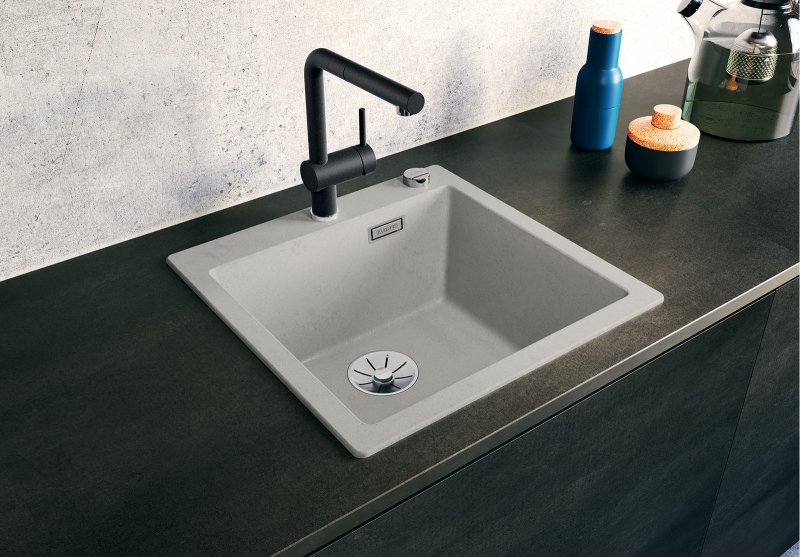 Кухонная мойка Blanco PLEON 5 чёрний выполнена из искусственного камня SILGRANIT® высокого качества и подходит для установки в кухонный шкаф шириной 50 см. Накладная мойка с одной основной чашей, без сушки (крыла). Глубина чаши мойки составляет 22 см. Модель PLEON 5 чёрний 525951 производится на заводе Blanco в Германии и на нее распространяется официальная гарантия производителя в течение 5 лет. На нашем сайте вы можете купить мойку Blanco PLEON 5 чёрний 525951 онлайн с доставкой по любому адресу в Украине Гранитные мойки производятся из материала Silgranit. Этот композитный материал имеет долю натурального гранита около 80%. Это видимо не только при взгляде, но и на ощупь. Мойки из материала Silgranit имеют приятную на ощупь структуру натурального камня и очень легки в уходе. Silgranit действует как защитная гигеническая формула, обеспечивающая очень легкий уход. Более того, материал отличается высокой стойкостью. На кухне вы хотите готовить из чего угодно, например томатов, клубники, лимонного сока или моркови. Ваша мойка останется невосприимчивой к тому, что вы готовите за ней и не допустит никаких отложений или обесцвечивания. Такое сочетание делает вашу мойку из материала Silgranit оптимальной с точки зрения функциональности и хорошего вида. Чистая элегантность – большой объем отводная арматура InFino® с корзинчатым вентилем 3 ½“.