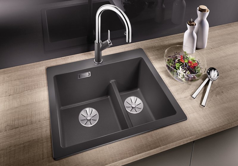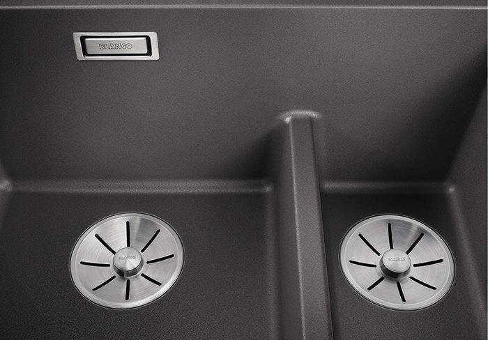 Кухонная мойка Blanco PLEON 6 Split белыйиз искусственного камня SILGRANIT® высокого качества и подходит для установки в кухонный шкаф шириной 60 см. Накладная мойка с двумя чашами без сушки (крыла). Глубина чаши мойки составляет 22 см. Модель PLEON 6 Split белый 521693 производится на заводе Blanco в Германии и на нее распространяется официальная гарантия производителя в течение 5 лет. На нашем сайте вы можете купить мойку Blanco PLEON 6 Split белый 521693 онлайн с доставкой по любому адресу в Украине Гранитные мойки производятся из материала Silgranit. Этот композитный материал имеет долю натурального гранита около 80%. Это видимо не только при взгляде, но и на ощупь. Мойки из материала Silgranit имеют приятную на ощупь структуру натурального камня и очень легки в уходе. Silgranit действует как защитная гигеническая формула, обеспечивающая очень легкий уход. Более того, материал отличается высокой стойкостью. На кухне вы хотите готовить из чего угодно, например томатов, клубники, лимонного сока или моркови. Ваша мойка останется невосприимчивой к тому, что вы готовите за ней и не допустит никаких отложений или обесцвечивания. Такое сочетание делает вашу мойку из материала Silgranit оптимальной с точки зрения функциональности и хорошего вида. Чистая элегантность – большой объем отводная арматура InFino® с корзинчатым вентилем 3 ½“.