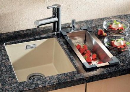 Кухонная мойка Blanco SUBLINE 320-U нежно белый из искусственного камня SILGRANIT® высокого качества и подходит для установки в кухонный шкаф шириной 40 см. Мойка с установкой под столешницу. Глубина чаши мойки составляет 19 см. Модель SUBLINE 320-U нежно белый 527160 производится на заводе Blanco в Германии и на нее распространяется официальная гарантия производителя в течение 5 лет. На нашем сайте вы можете купить мойку Blanco SUBLINE 320-U нежно белый 527160 онлайн с доставкой по любому адресу в Украине Гранитные мойки производятся из материала Silgranit. Этот композитный материал имеет долю натурального гранита около 80%. Это видимо не только при взгляде, но и на ощупь. Мойки из материала Silgranit имеют приятную на ощупь структуру натурального камня и очень легки в уходе. Silgranit действует как защитная гигеническая формула, обеспечивающая очень легкий уход. Более того, материал отличается высокой стойкостью. На кухне вы хотите готовить из чего угодно, например томатов, клубники, лимонного сока или моркови. Ваша мойка останется невосприимчивой к тому, что вы готовите за ней и не допустит никаких отложений или обесцвечивания. Такое сочетание делает вашу мойку из материала Silgranit оптимальной с точки зрения функциональности и хорошего вида. Дизайнерские мойки для монтажа под столешницу из материала SILGRANIT® PuraDur® отводная арматура InFino® с корзинчатым вентилем 3 ½“.