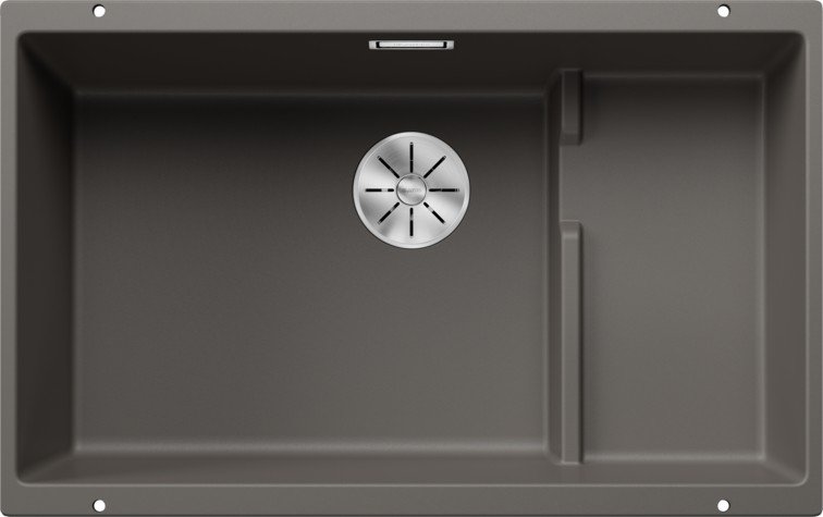 Кухонная мойка Blanco SUBLINE 700-U Level вулканический серый из искусственного камня SILGRANIT® высокого качества и подходит для установки в кухонный шкаф шириной 80 см. Мойка с установкой под столешницу. Глубина чаши мойки составляет 20 см. Модель SUBLINE 700-U Level вулканический серый 527355 производится на заводе Blanco в Германии и на нее распространяется официальная гарантия производителя в течение 5 лет. На нашем сайте вы можете купить мойку Blanco SUBLINE 700-U Level вулканический серый 527355 онлайн с доставкой по любому адресу в Украине Гранитные мойки производятся из материала Silgranit. Этот композитный материал имеет долю натурального гранита около 80%. Это видимо не только при взгляде, но и на ощупь. Мойки из материала Silgranit имеют приятную на ощупь структуру натурального камня и очень легки в уходе. Silgranit действует как защитная гигеническая формула, обеспечивающая очень легкий уход. Более того, материал отличается высокой стойкостью. На кухне вы хотите готовить из чего угодно, например томатов, клубники, лимонного сока или моркови. Ваша мойка останется невосприимчивой к тому, что вы готовите за ней и не допустит никаких отложений или обесцвечивания. Такое сочетание делает вашу мойку из материала Silgranit оптимальной с точки зрения функциональности и хорошего вида. Дизайнерские мойки для монтажа под столешницу из материала SILGRANIT® PuraDur® отводная арматура InFino® с корзинчатым вентилем 3½“, набор крепежа