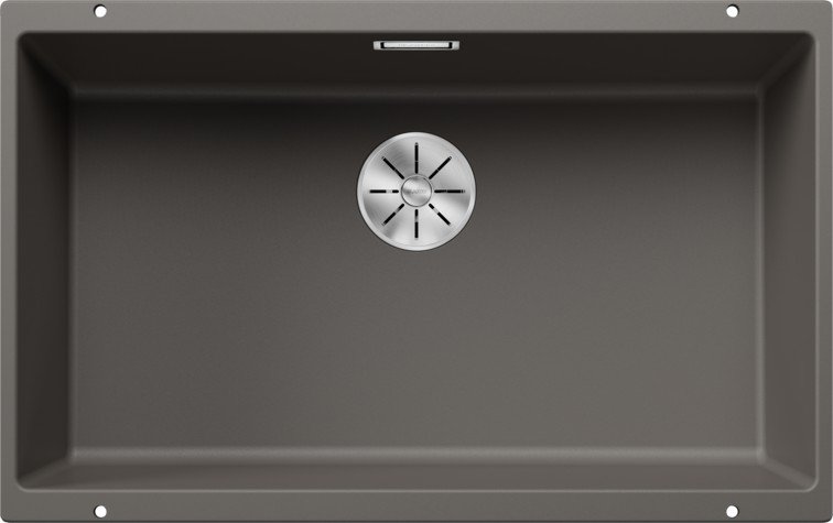 Кухонная мойка Blanco SUBLINE 700-U вулканический серый из искусственного камня SILGRANIT® высокого качества и подходит для установки в кухонный шкаф шириной 80 см. Мойка с установкой под столешницу. Глубина чаши мойки составляет 19 см. Модель SUBLINE 700-U вулканический серый 527356 производится на заводе Blanco в Германии и на нее распространяется официальная гарантия производителя в течение 5 лет. На нашем сайте вы можете купить мойку Blanco SUBLINE 700-U вулканический серый 527356 онлайн с доставкой по любому адресу в Украине Гранитные мойки производятся из материала Silgranit. Этот композитный материал имеет долю натурального гранита около 80%. Это видимо не только при взгляде, но и на ощупь. Мойки из материала Silgranit имеют приятную на ощупь структуру натурального камня и очень легки в уходе. Silgranit действует как защитная гигеническая формула, обеспечивающая очень легкий уход. Более того, материал отличается высокой стойкостью. На кухне вы хотите готовить из чего угодно, например томатов, клубники, лимонного сока или моркови. Ваша мойка останется невосприимчивой к тому, что вы готовите за ней и не допустит никаких отложений или обесцвечивания. Такое сочетание делает вашу мойку из материала Silgranit оптимальной с точки зрения функциональности и хорошего вида. Дизайнерские мойки для монтажа под столешницу из материала SILGRANIT® PuraDur® отводная арматура InFino® с корзинчатым вентилем 3½“, набор крепежа