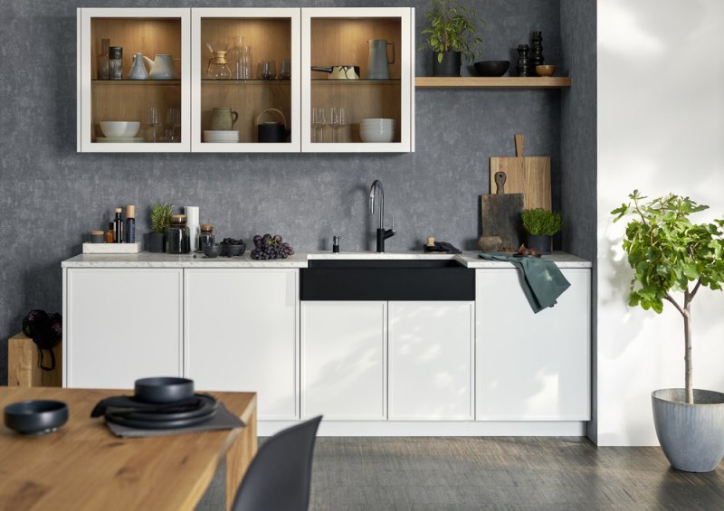 - Идеальное сочетание: фронтальная видимая стенка мойки подходит для шкафа шириной 90 см