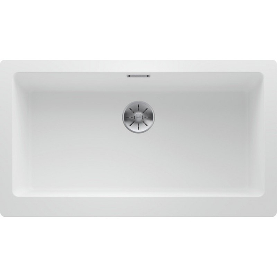 Кухонная мойка Blanco VINTERA XL 9-UF белый из искусственного камня SILGRANIT® высокого качества и подходит для установки в кухонный шкаф шириной 90 см. Мойка с установкой под столешницу. Глубина чаши мойки составляет 22 см. Модель VINTERA XL 9-UF белый 526105 производится на заводе Blanco в Германии и на нее распространяется официальная гарантия производителя в течение 5 лет. На нашем сайте вы можете купить мойку Blanco VINTERA XL 9-UF белый 526105 онлайн с доставкой по любому адресу в Украине Гранитные мойки производятся из материала Silgranit. Этот композитный материал имеет долю натурального гранита около 80%. Это видимо не только при взгляде, но и на ощупь. Мойки из материала Silgranit имеют приятную на ощупь структуру натурального камня и очень легки в уходе. Silgranit действует как защитная гигеническая формула, обеспечивающая очень легкий уход. Более того, материал отличается высокой стойкостью. На кухне вы хотите готовить из чего угодно, например томатов, клубники, лимонного сока или моркови. Ваша мойка останется невосприимчивой к тому, что вы готовите за ней и не допустит никаких отложений или обесцвечивания. Такое сочетание делает вашу мойку из материала Silgranit оптимальной с точки зрения функциональности и хорошего вида. Дизайнерские мойки для монтажа под столешницу из материала SILGRANIT® PuraDur® отводная арматура InFino® с корзинчатым вентилем 3½“, набор крепежа