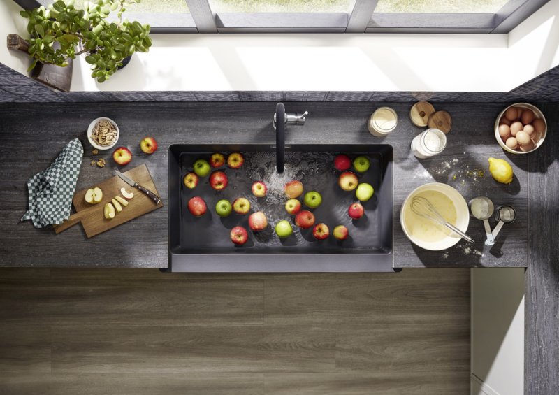 - Идеальное сочетание: фронтальная видимая стенка мойки подходит для шкафа шириной 90 см