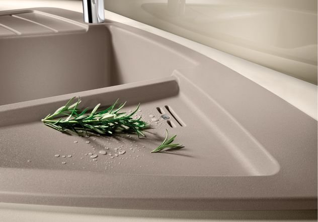 Кухонная мойка Blanco ZIA 9 E нежно белый 527212 из искусственного камня SILGRANIT® высокого качества и подходит для установки в кухонный шкаф шириной 60 - 90 x 90 см. Мойка с установкой под столешницу. Глубина чаши мойки составляет 18 см. Модель Blanco ZIA 9 E нежно белый 527212 производится на заводе Blanco в Германии и на нее распространяется официальная гарантия производителя в течение 5 лет. На нашем сайте вы можете купить мойку Blanco Blanco ZIA 9 E нежно белый 527212 онлайн с доставкой по любому адресу в Украине Гранитные мойки производятся из материала Silgranit. Этот композитный материал имеет долю натурального гранита около 80%. Это видимо не только при взгляде, но и на ощупь. Мойки из материала Silgranit имеют приятную на ощупь структуру натурального камня и очень легки в уходе. Silgranit действует как защитная гигеническая формула, обеспечивающая очень легкий уход. Более того, материал отличается высокой стойкостью. На кухне вы хотите готовить из чего угодно, например томатов, клубники, лимонного сока или моркови. Ваша мойка останется невосприимчивой к тому, что вы готовите за ней и не допустит никаких отложений или обесцвечивания. Такое сочетание делает вашу мойку из материала Silgranit оптимальной с точки зрения функциональности и хорошего вида. Комфорт и качество в рамках оригинального дизайна