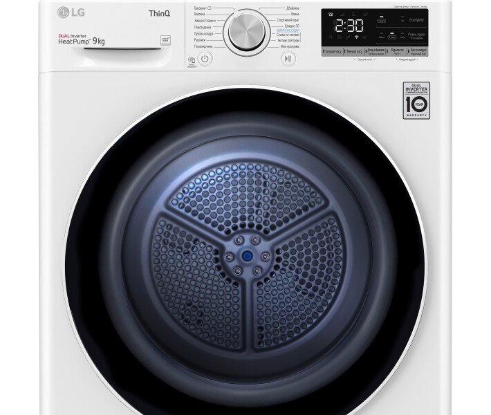 - Дополнительные программы сушки, загружаемые через приложение LG ThinQ™: Одежда малыша, Спортивная одежда, Одеяло, Освежить одеяло, Сезон дождей, Одно дело, Дезодорация, Небольшая загрузка, Женское белье, Легкая глажка, Супер сушка, Экономическая сушка, Объем , Уменьшение складок, Обувь / Тканев ,