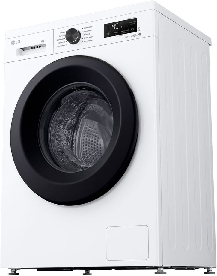 LG F2Y2NS6WE — умная узкая стиральная машина с паром и Wi-Fi управлением