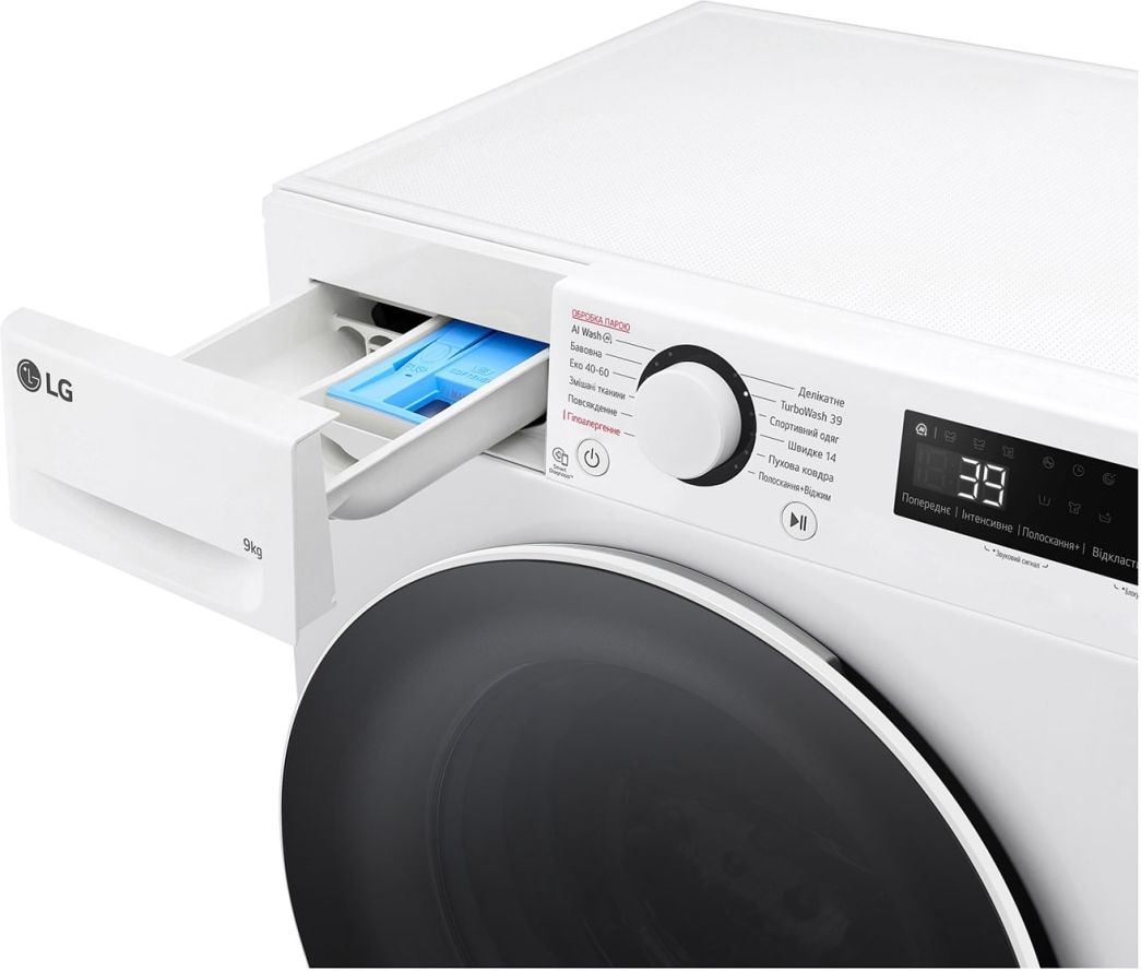 LG F2Y5FS0W — это вместительная фронтальная стиральная машина нового поколения с загрузкой до 9 кг и барабаном объёмом 58 литров. Это не просто крупная машина — она ещё и умная, что делает её одним из самых продвинутых вариантов в своём классе.