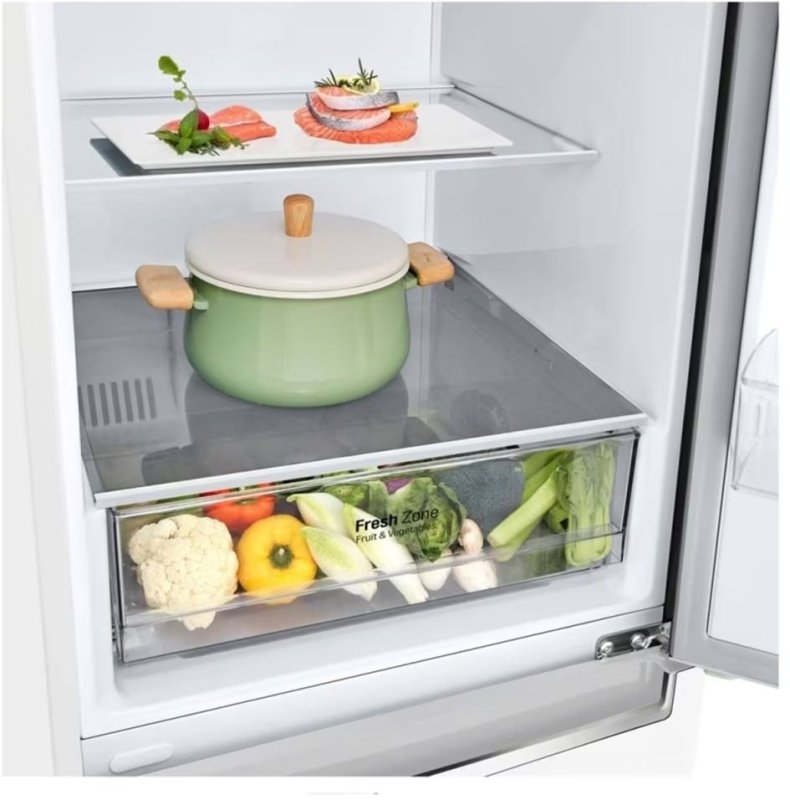 Быстрое и равномерное охлаждение Панель холодного воздуха в верхней части холодильника обеспечивает на 32%* более быстрое и равномерное охлаждение, чтобы ваши продукты сохранялись свежими еще дольше. Тихая работа Уровень шума в новых холодильниках LG DoorCooling⁺ 36 дБ, что на 25% ниже, чем в предыдущих моделях. Тихая Нулевой зазор С нулевым зазором холодильник LG можно ставить вплотную к стене и открывать дверь на 90°. Благодаря этому ящики выдвигаются беспрепятственно. Total No Frost* Холодильники с технологией LG Total No Frost больше не требуют Умный контроль холодильника Со смартфоном и приложением LG ThinQ™ вы можете удаленно регулировать настройки температуры, чтобы всегда быть готовым к шумной вечеринке.