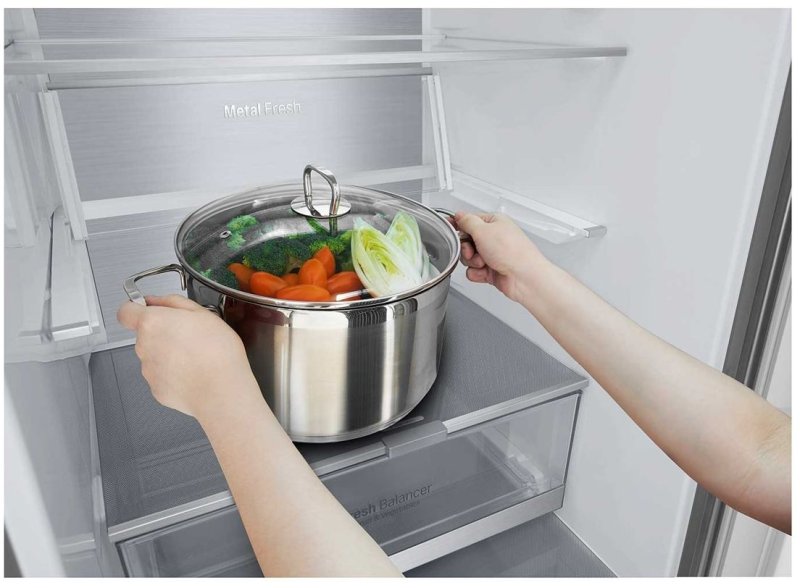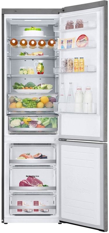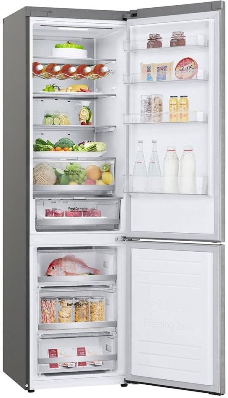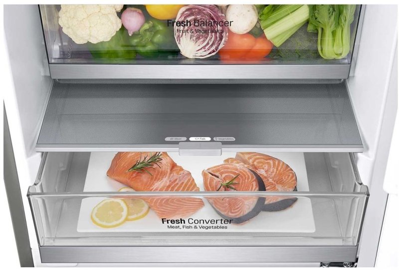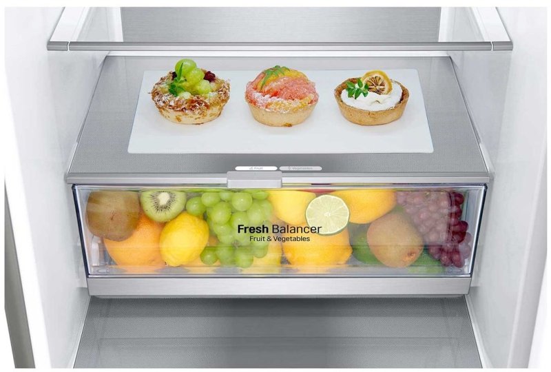 Быстрое и равномерное охлаждение Панель холодного воздуха в верхней части холодильника обеспечивает на 32%* более быстрое и равномерное охлаждение, чтобы ваши продукты сохранялись свежими еще дольше. Тихая работа Уровень шума в новых холодильниках LG DoorCooling+ 36 дБ, что на 25% ниже, Простое и удобное хранение Усовершенствованная складная полка теперь имеет два этапа сложения, что позволяет хранить крупные и габаритные продукты или блюда. Умный контроль холодильника Со смартфоном и приложением LG ThinQ™ вы можете удаленно регулировать настройки температуры, чтобы всегда быть готовым к шумной вечеринке. Элегантный и практичный минимализм Новый холодильник с нижней морозильной камерой – воплощение функциональности и стиля в элегантном корпусе. Минималистский дизайн максимизирует элегантность и удобство. Многопоточное охлаждение Multi Air Flow* Система многопоточного охлаждения Smart Inverter* компрессор Smart Inverter* компрессор отличается экономичностью и меньшим уровнем шума по сравнению с моделями с обычным компрессором. Smart Diagnosis™ Функция Smart Diagnosis™ от LG — это быстрый и легкий способ выявить и устранить неполадки. Просто позвоните на горячую линию поддержки клиентов LG и поместите телефон на холодильник. После этого холодильник установит соединение с компьютером, который выполнит диагностику в считанные секунды и предоставит мгновенное решение. Более легкий доступ к отсеку объемом 384 литров Все 384 литров пространтсва вы сможете настроить и приспособить под себя Нулевой зазор С нулевым зазором холодильник LG можно ставить вплотную к стене и открывать дверь на 90°. Благодаря этому ящики выдвигаются беспрепятственно.