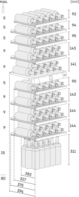 На шести прочных полках, выполненных из дерева, может поместиться до 64 бутылок вина.
