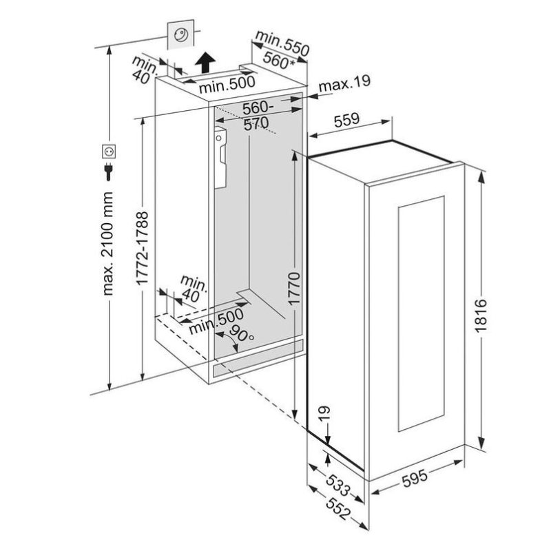 - Размеры ниши для встройки: 178 x 56 x 55 см ,