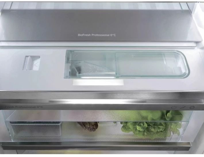 "Хрустящий салат и сочные клубники - самые нежные продукты заслуживают особого места, чтобы дольше оставаться свежими. Отделение BioFresh. В отделении Fruit & Vegetable температура составляет почти 0 ° C. Благодаря высокому уровню влаги и герметичности это отделение прекрасно подходит для неупакованных овощей и фруктов. Вам не нужно ничего настраивать.