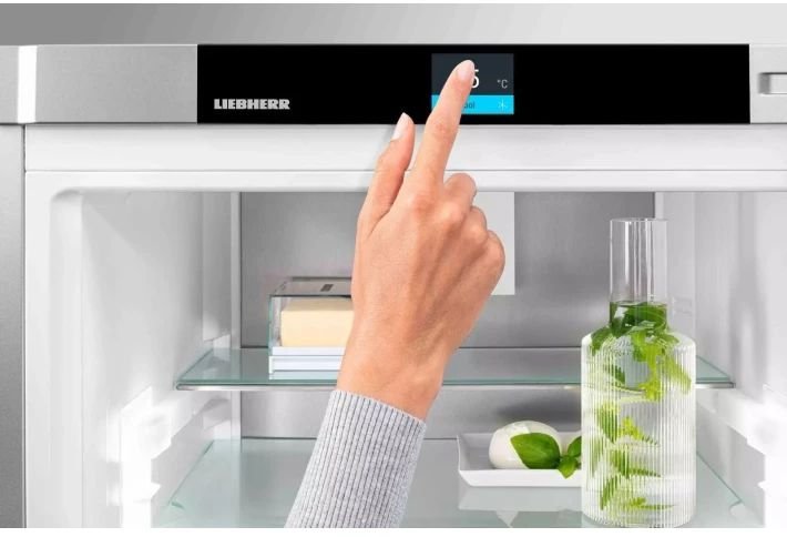 Ваш Liebherr будет слушаться вас по мановению пальцев: благодаря сенсорному и свайповому экрану вы сможете управлять своим холодильником интуитивно понятно и очень легко. Просто выберите такие функции, как «SuperCool», на цветном экране касанием и проведите пальцем по экрану. Так же легко можно регулировать температуру. А что, если вы не используете дисплей активно? Тогда он показывает вам фактическую температуру.