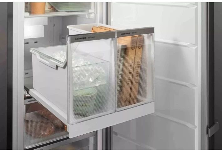 Благодаря запасу кубиков льда весом 5,7 кг система IceTower гарантирует, что на вашей вечеринке охлаждённые напитки никогда не закончатся. Лопатка для льда и выдвижная полка на телескопических направляющих обеспечивают удобный доступ к кубикам льда. Благодаря дополнительному лотку можно изготовить небольшое количество льда и одновременно хранить под ним замороженные продукты. В соседнем выдвижном контейнере также есть место для размещения продуктов.